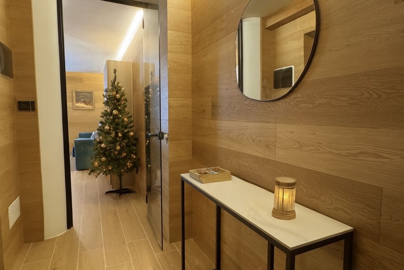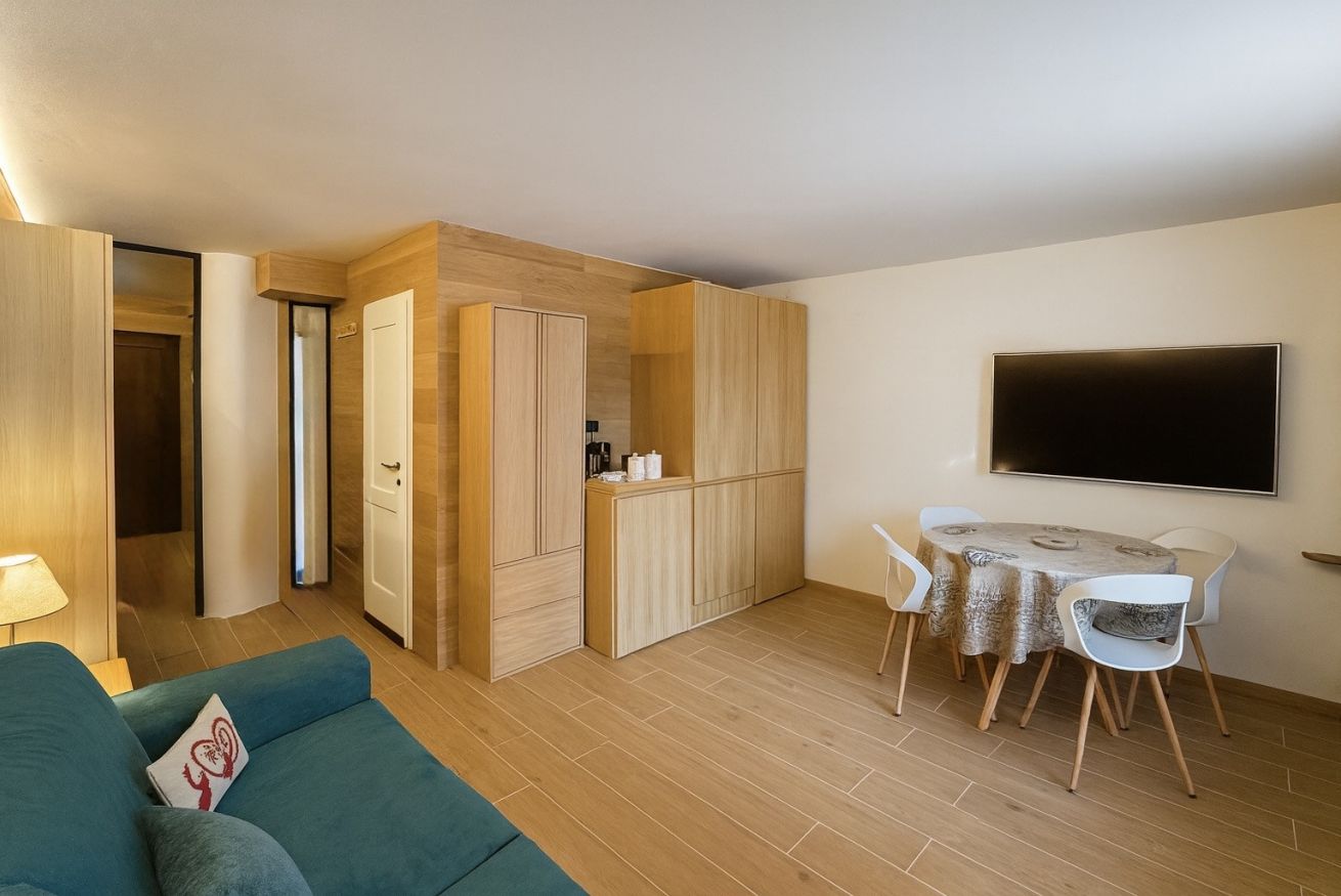 All’interno ti accoglie un ambiente caldo, moderno e curato nei minimi dettagli, arredato con materiali di pregio e rivestito con rovere naturale spazzolato, pensato per farti sentire subito in vacanza: zona giorno luminosa, cucina attrezzata, 1 camera matrimoniale confortevole, bagno ampio moderno. Dopo una giornata sulla neve potrai rilassarti in totale comfort.